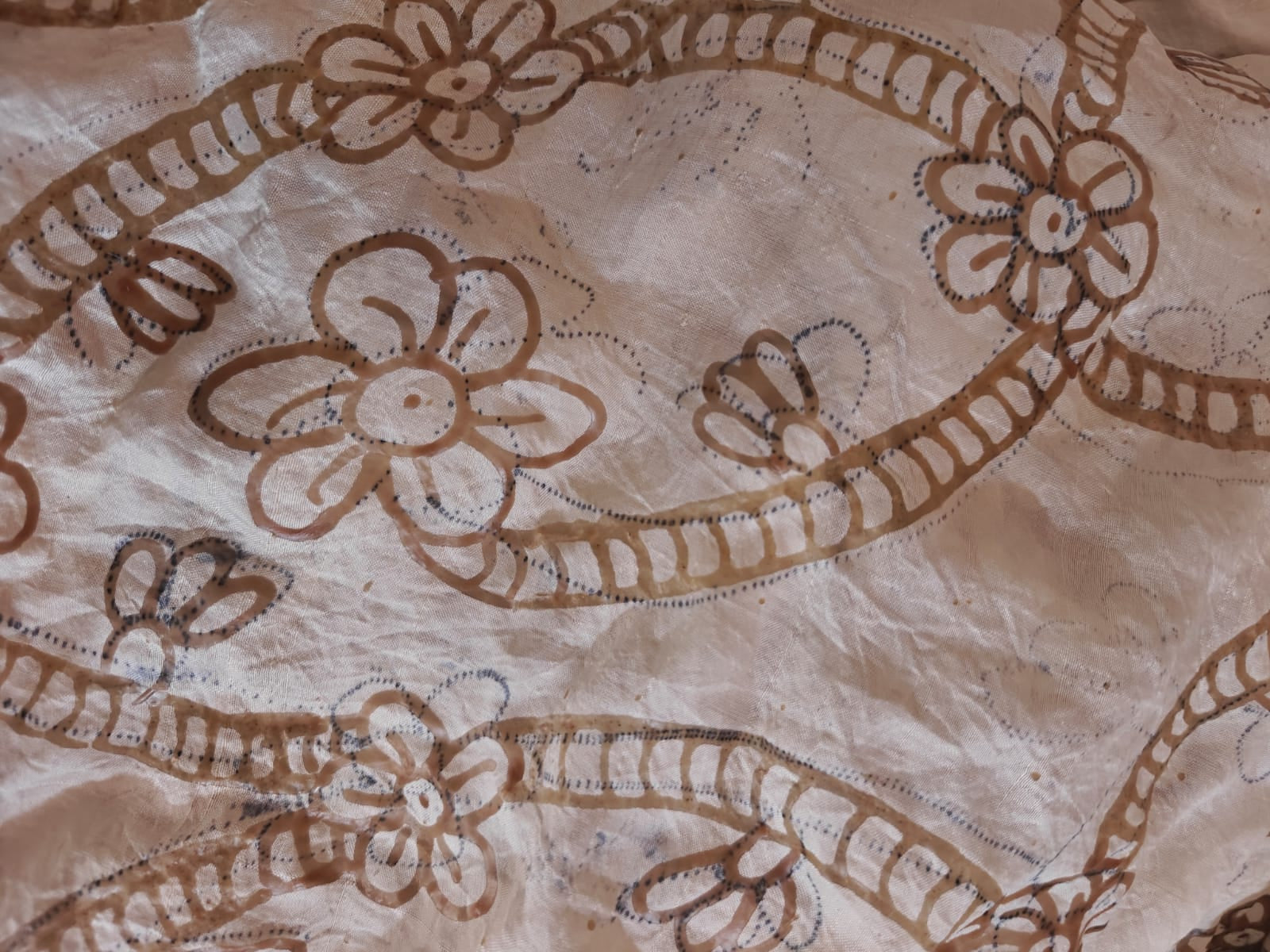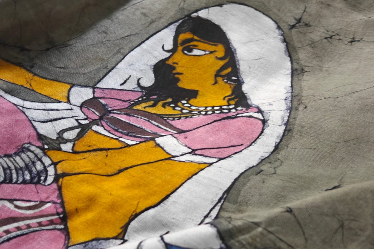 Ujjaini Batik, a traditional craft from Ujjain, Madhya Pradesh, uses a wax-resist dyeing technique. Artisans apply wax to fabric before dyeing, creating intricate, handcrafted patterns.