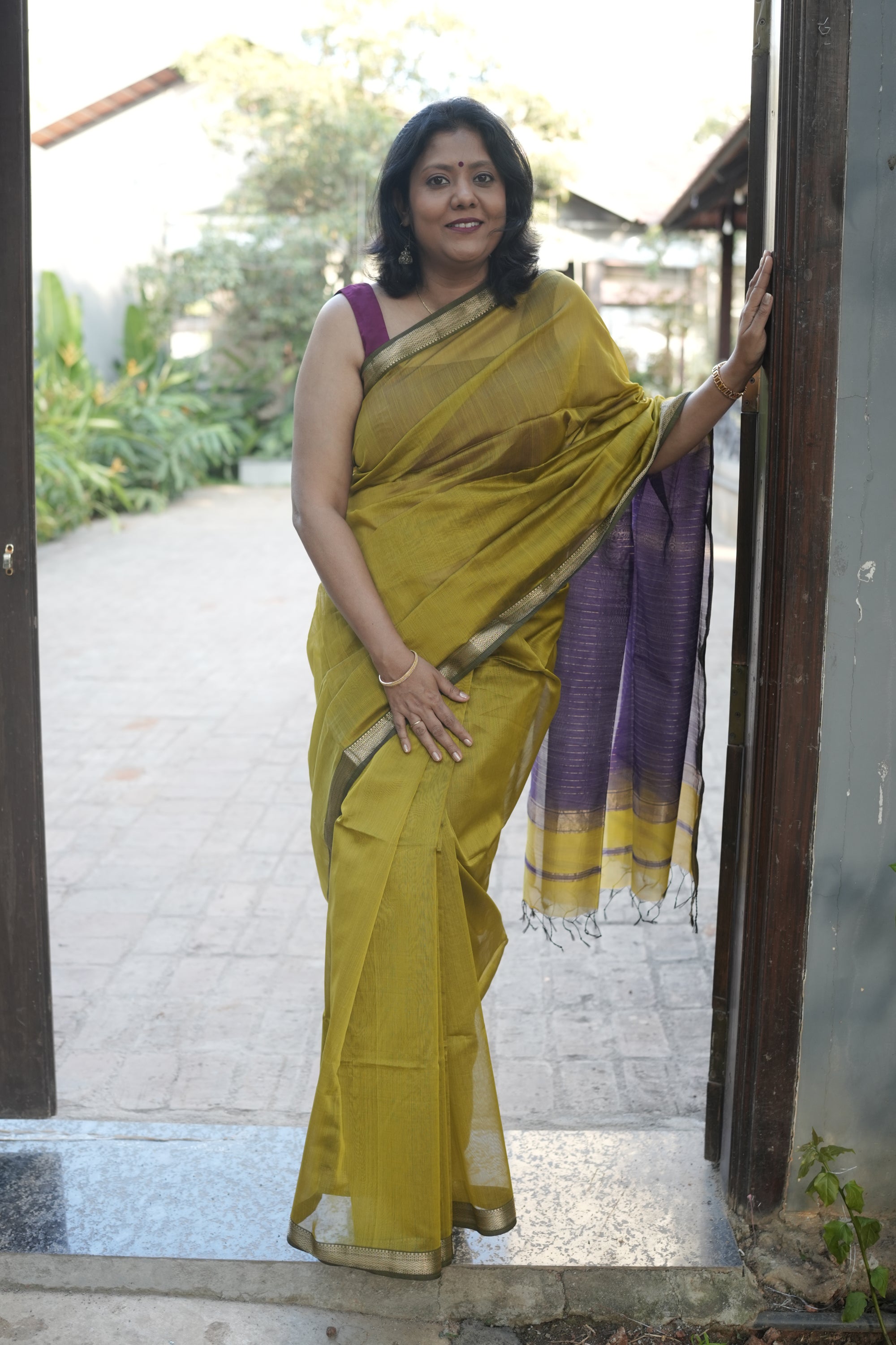 Maheshwari weaves are inspired by the majestic Ahilya Fort and the tranquil Narmada River in Maheshwar, Madhya Pradesh. Adorned with intricate geometric patterns, temple motifs, and architectural designs, these sarees are known for their lightweight texture, glossy finish, and distinctive reversible borders.